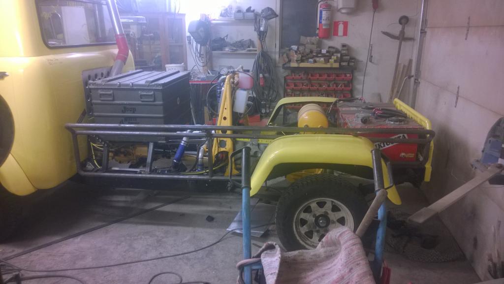 Kuskin puolen lavan laita ja rungon kiinnikkeet heftattu kasaan, jos sais loppuviikon aikana tuon kopioitua vänkärinkin puolelle,