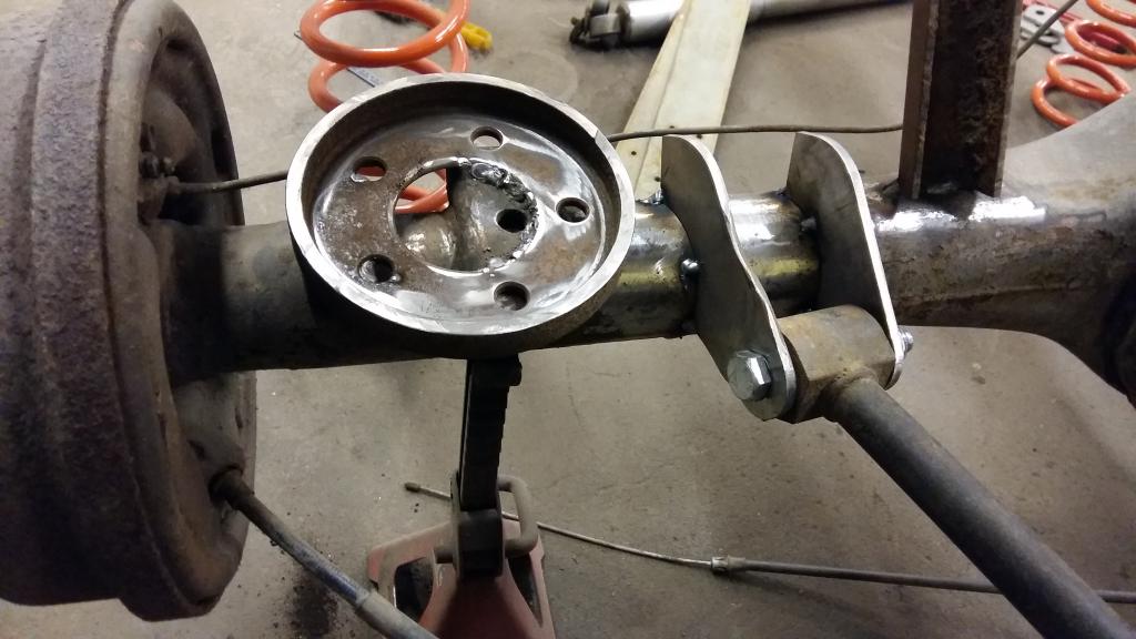 Defenderin tukivarsissa riittäisi akselimassa. Saa tarjota jos löytyy ylimääräisenä järeitä tukivarsia. Rungosta saa tuon jälkeen napsastus 50 senttiä pois akselin takaa. Nykyinen melko mittava taka-ylitys pienenee huomattavasti. Kaasupulloa täyttämään ja lisää lankaa kemppiin...