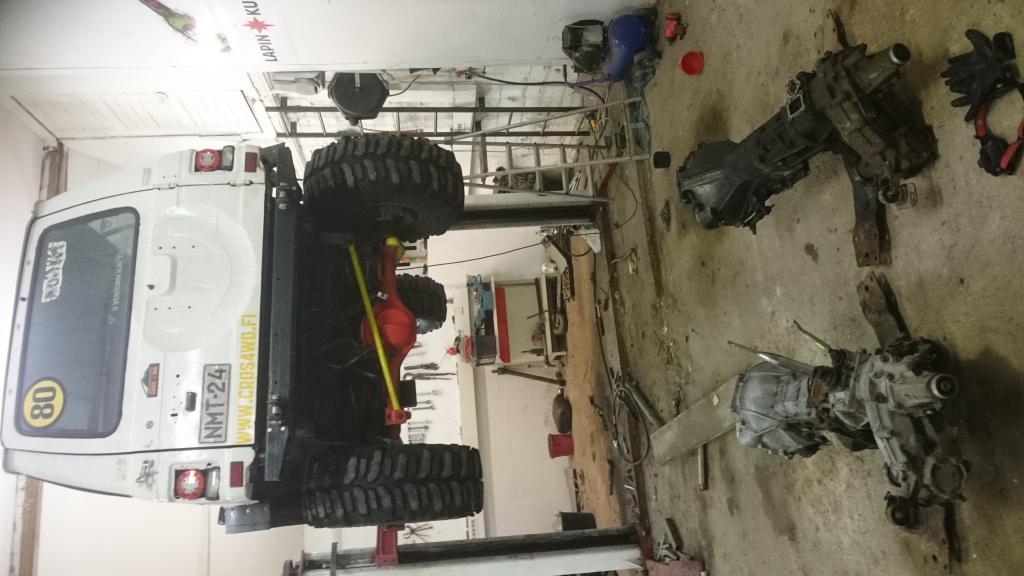 Topiccia kun selaa taakse päin niin jotain kuvia löytyy akseli jumpasta. Keula ja noin 120cm runkoa on pitkästä super select -92 pajerosta, ei abs jarruja. Vetarin vapautus mekanismi lukittu kiinni asentoon. Kiinteiden laippojen tilalle napalukot. Kakkos Korisen Apusimpukka kestää ihan toiseen tyyliin kun vanhempi versio. Ohjaus simpukka on 1korisesta, joutu yhden reijän poraa lisää niin kävi paikoilleen. Vääntösauvat pitkästä, ne on hyvät, pienellä esijännityksellä pysyy keula ylhäällä mutta joustaa kuitenkin sisään. Paremmat kun ohuet sauva jouset. Ei leimalla mitään brobleema, Gr patrollin orkkis vanteet oli vielä niin renkaat oli sisemmässä kuin alunperin.