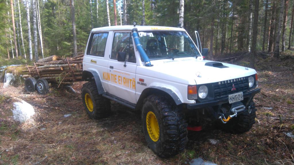 Topiccia kun selaa taakse päin niin jotain kuvia löytyy akseli jumpasta. Keula ja noin 120cm runkoa on pitkästä super select -92 pajerosta, ei abs jarruja. Vetarin vapautus mekanismi lukittu kiinni asentoon. Kiinteiden laippojen tilalle napalukot. Kakkos Korisen Apusimpukka kestää ihan toiseen tyyliin kun vanhempi versio. Ohjaus simpukka on 1korisesta, joutu yhden reijän poraa lisää niin kävi paikoilleen. Vääntösauvat pitkästä, ne on hyvät, pienellä esijännityksellä pysyy keula ylhäällä mutta joustaa kuitenkin sisään. Paremmat kun ohuet sauva jouset. Ei leimalla mitään brobleema, Gr patrollin orkkis vanteet oli vielä niin renkaat oli sisemmässä kuin alunperin.