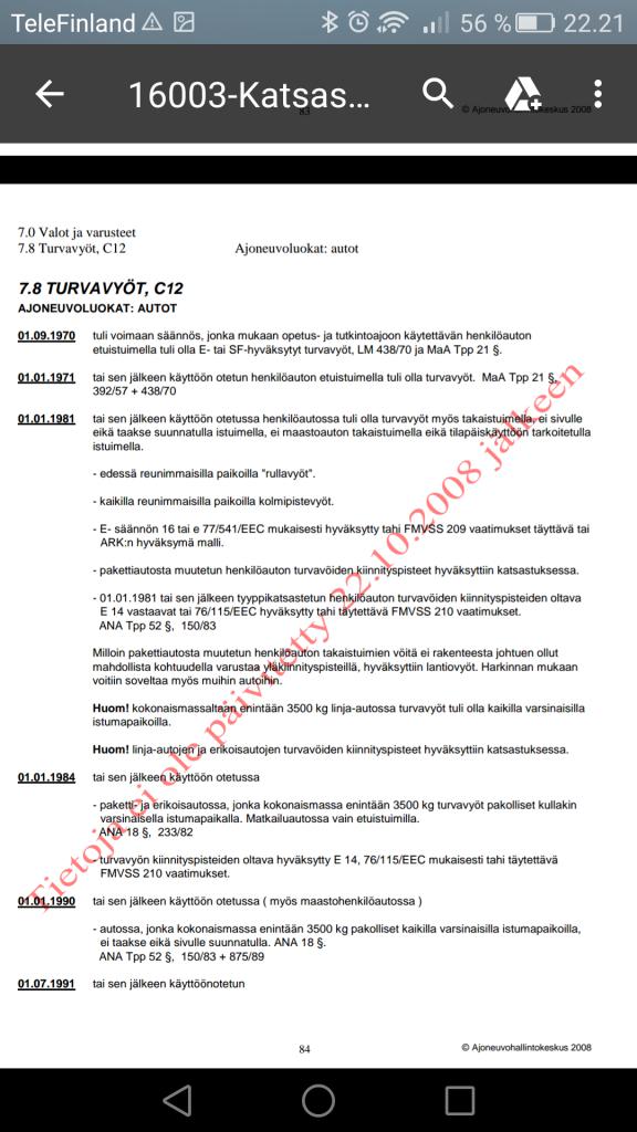 Vahvana arvauksena niin, että jos sulla on vyöt kiinni mutta ei ole esim. lukkolaitteita niin hylky tulee. Mutta onko tosiaan vasta '90 tullut pakolliseksi takavyöt maastoautoissa,,ja,js näin niin miksi? Kun henkilöautoissa ne taisi tulla jo olikohan '83..