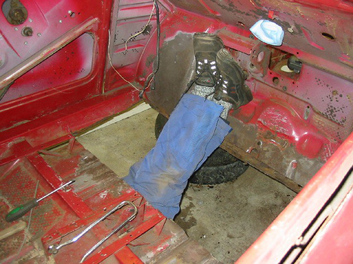 Katotaampa mitä tuolla muovikaarien alla on. Mitähän tämän muovilätkän alla sitten on? Ristus notta! Uskaltaiskohan ottaa maton irti. No perskutarallaa, kerranhan se vaan kirpasee! Kokkeilla välillä tukkiakki. Nää varmaan ruostuu vaan kontista, mutta voihan tuota etulattiaa vähän vilkasta. Ja peltiä: Hulluna on pakerrettu ja värkätty kaikenlaista ja auto näyttää nyt tältä: Eli ihan justiinsa samalta kuin alottaessa... On tämä lystiä. Tästä jatketaan kamppailua. |