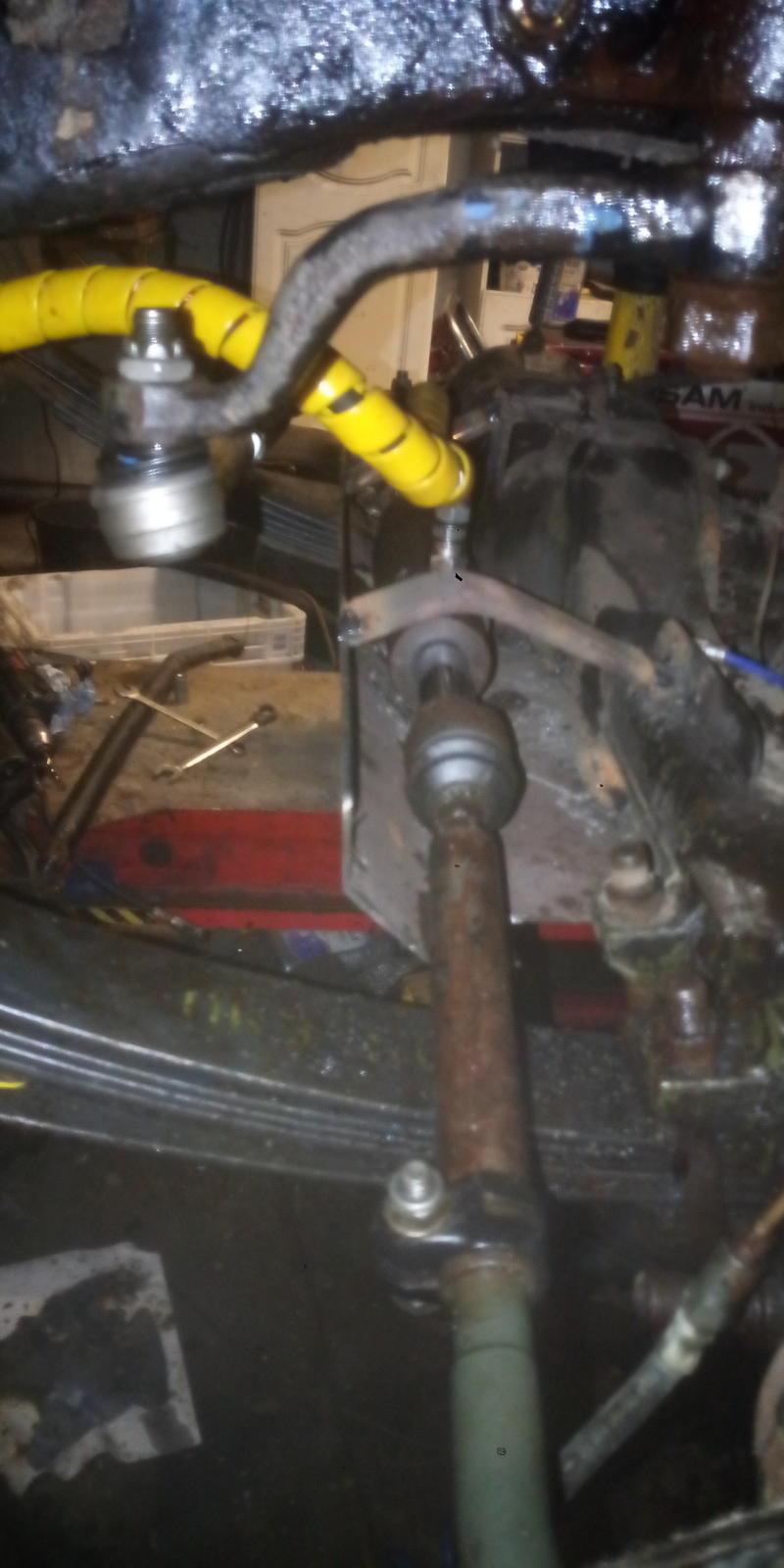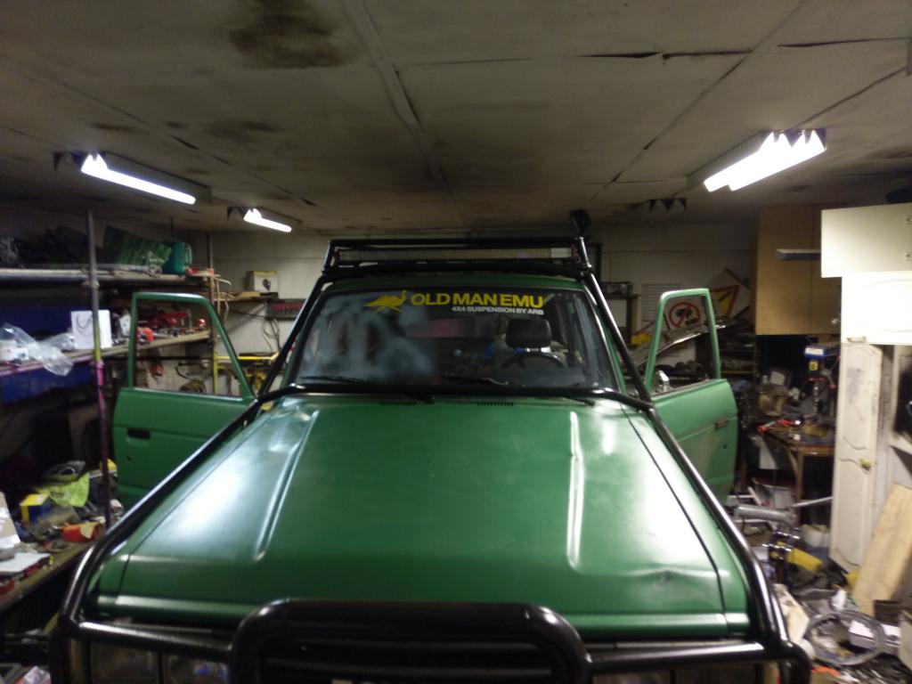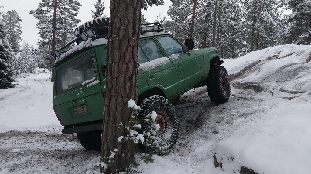 Kardaanin pultit oli päässy löystymään ja irronnut ja pamahti sit mettäs öljypohja paskaks et alko kusemaan öljyä, sain onneksi naputeltua vasaralla ja ruuvarilla umpeen että tiputteli vain välillä, ajamalla kummiskin kulmasta-lohjalle