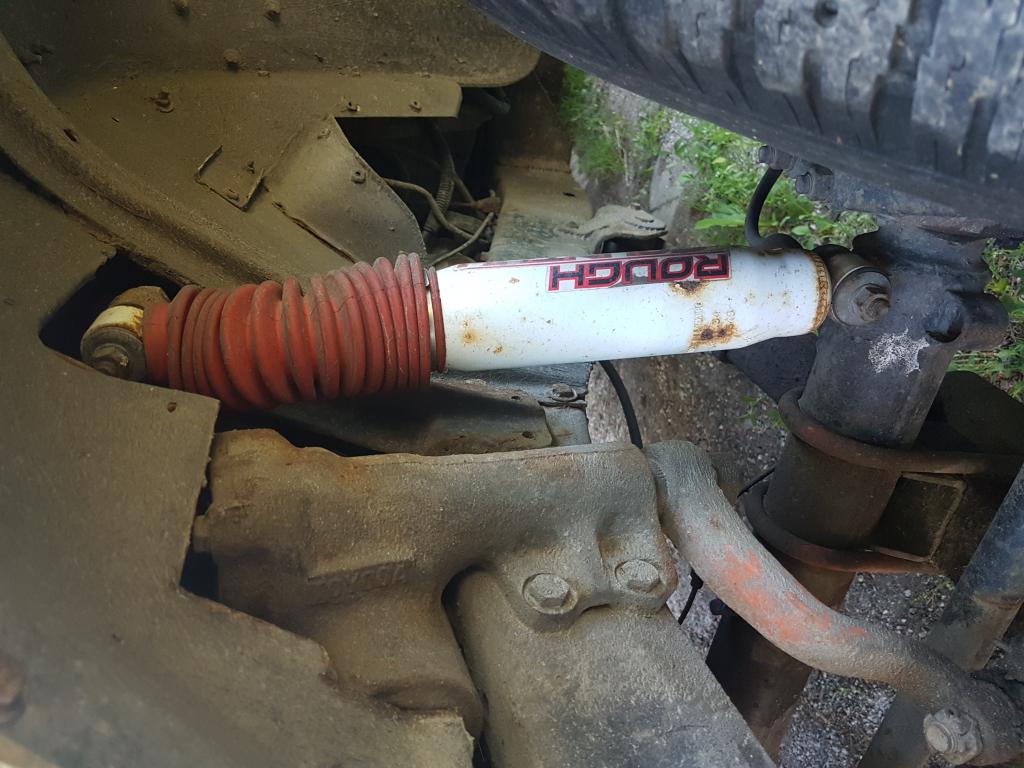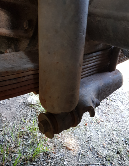 No tuota, kuva jäi ottamatta, mutta mulla on sellaset U-pulttien aluslevyt, jossa on iskarin alakiinnikkeet. Siis se levy joka puristaa jousipakan akselia vasten. Iskari on siis akselin takana, alhaalta kiinni siinä aluslevyssä. Rungossa on taasen omatekoinen yläkiinnike. Iskarin yläpään korkeus niin ettei iskari lyö pohjaan sisäänjoustossa.