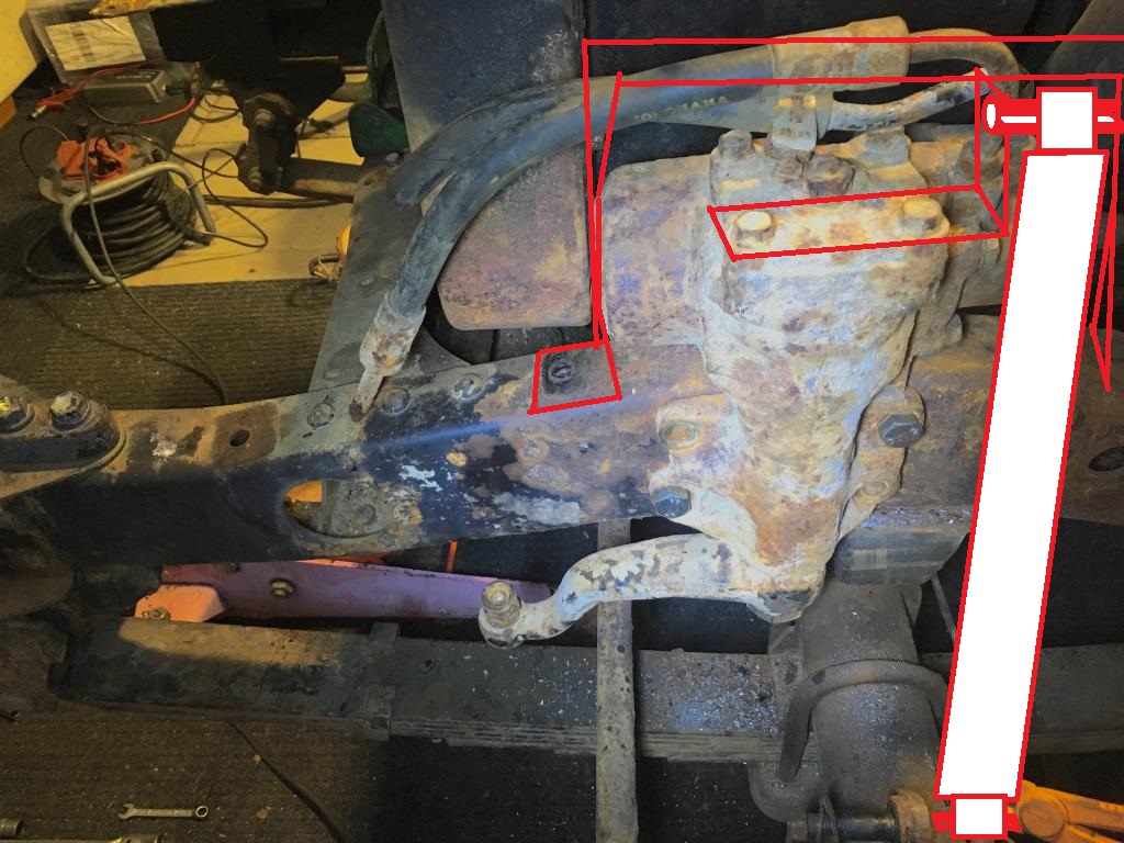 Tossa kohtaa jää just etupuolelle, mutta aika liki pohjaanlyöntikumin alatasoa tulee tosiaan sektorivarren akselin alamutteri. Taaempana ei enää sektorivarsi yltäis tarpeeks eteen muutenkaan, menis ohjausvarsi raidetangon päälle linkkuun käännettäessä.