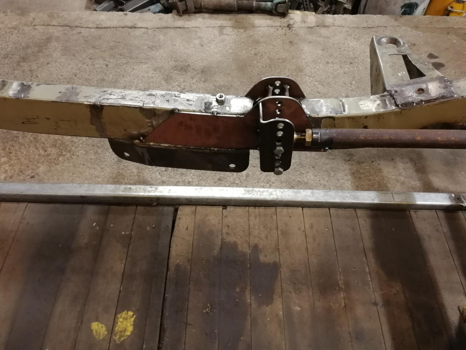 Jonka seurauksena täytyy jakolaatikko/vaihdelaatikkopaketti mallailla paikalleen notta nähdään mihkä saadaan rungon ulkopuoliset korvakkeet mahtumaan. Ulkopuolisessa kiinityksessä tulee se ongelma että jos ja kun tarttee ylätukivarsien rungonpäitä säätää tarttee jakolaatikko irrottaa.