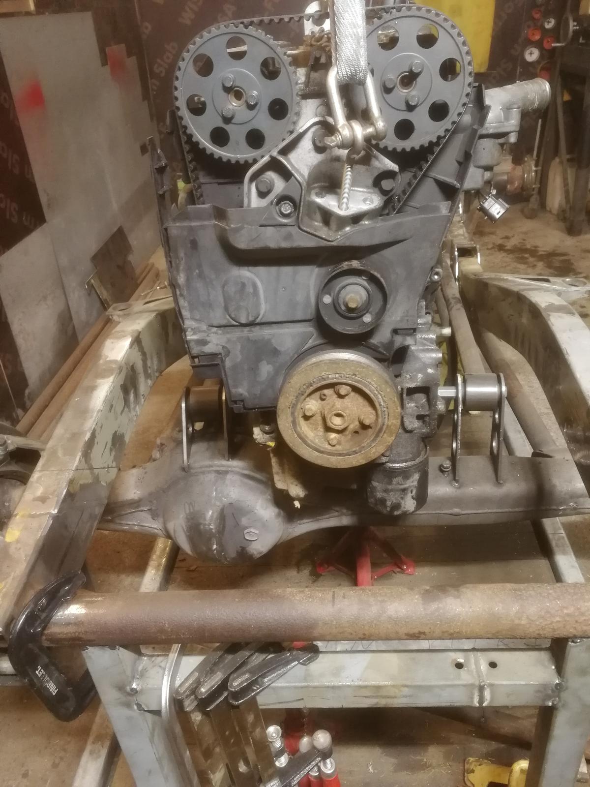 Dodii sovitus moottori saatu tallille ja mallailtu paikalleen. Noin 10mm sovitelevy laatikon ja moottorin väliin. Öljypohja uusiks. Imusarja uusiks. Öljysuodattimen siirto. Notta taitaa tuo alumiinin hitsaus tulla tutuks.