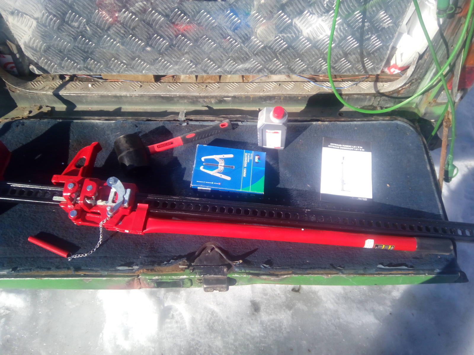 ![]() Jos ja kun tämäkin hajoaa niin viisastuu ja aidon hi-liftin ostattaa ![]() (nyt sentään jotain varaosia edellisestä )Edellinen tunkki oli lipposelta ja tämä motonetista siis. Silmille pantavia eroja ihmeen paljon. Motonetin malli huomattavan karkeampi valuosiltaan (aika näyttää onko hyvä vai huono juttu) Tästä Motonetin mallista puuttui myös "yläkäpälä" on kyllä varren kokoinen neliö lätkä mutta en keksi mikä tämän tarkoitus on ![]() ![]() Sekä tässä Motonetin mallissa ketjun päässä putken pätkä olisiko vapautinta varten ettei sormet tai hanskat jää niin helposti väliin... Mene ja tiedä