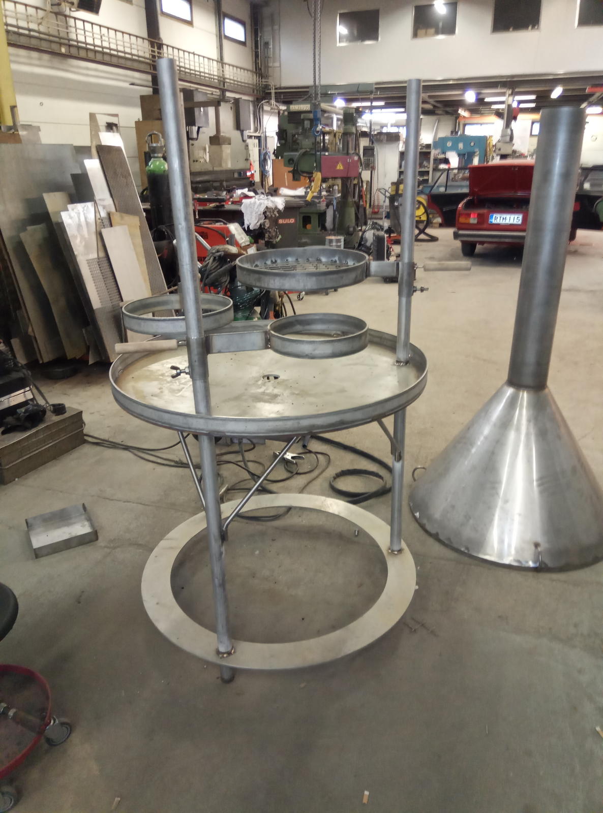 Grilli tuli rakennettua. Kahvoja lukuunottamatta kokonaan tehty rosterista. Vielä pitää laittaa lasikuulapuhallukseen...