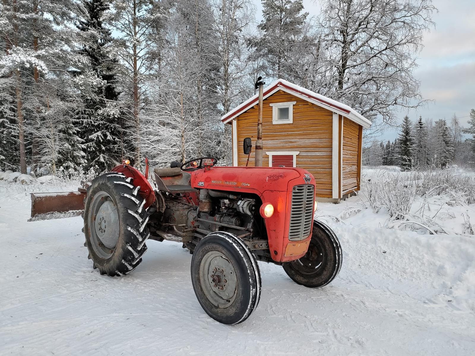 Fergusonia tuli silloin edellisenä kesänä hankinnan jälkeen laiteltua hieman paremmaksi, vaikka mitään ei tuossa mitään varsinaisesti rikki ollutkaan. Tuli uudet renkaat ympäriinsä, valot eteen ja taakse, laturi, tuntimittari vaijereineen ja pyörittimineen, hehku ja virtalukko, ratti ja repullinen niveliä. Aurauksetkin säätelin, niin ei vetele tiellä liikkuessa. Petollinen tuollainen vanha traktori, kun osia löytyy lähikaupasta. Ei ihan sitä, mihin kasarijapseja harrastaessa on tullut totuttua. Kiillottaa ja vahatakin piti välillä.