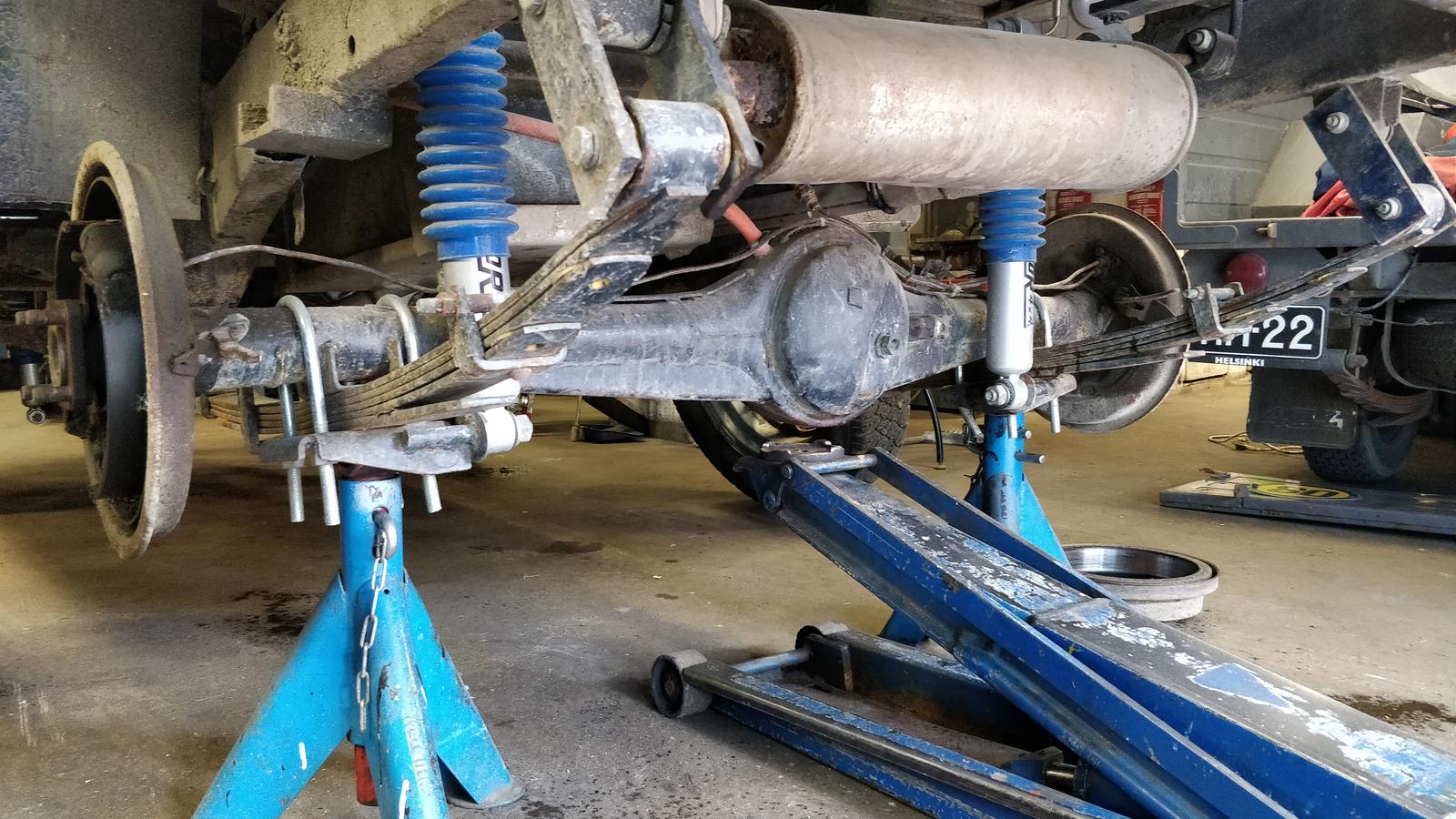Kaikenlaista pientä autoon on ilmestynyt. Ostohetkellä jakolaatikossa oli välitykset (taitaa olla 6.5), pokspoks (LockRight) lukko taka-akselilla, OME:n lehdet ja Raptorin iskarit, Opelin tehostin, Tankilla ja jakolaatikolla panssari, palkkihelmat sekä vinssi keulalla. Renkaita en ostanut mukaan, sillä mulla oli varastossa 33" MudTerrainit tätä varten jo aikaisemmin hankittuna.