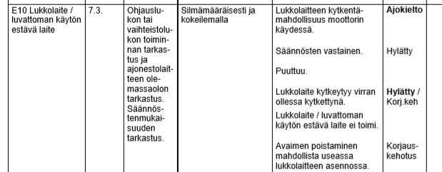 Eli siis rattilukon ei saa olla mahdollista kytkeytyä moottorin käydessä.