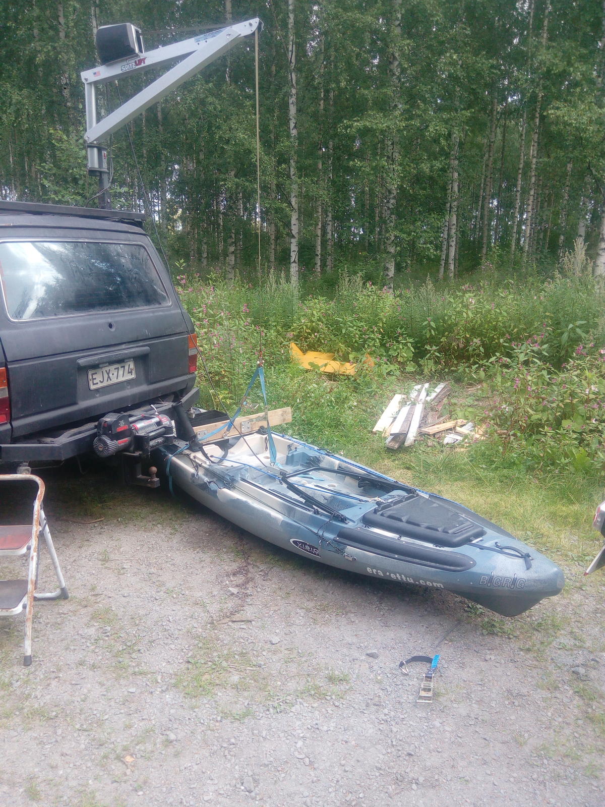 Sallittu kattokuorma 220 kg. Runko ja nosturi alle 100 kg. Enimmäkseen kuljetetaan kalastuskajakkia joka painaa 60 kg.