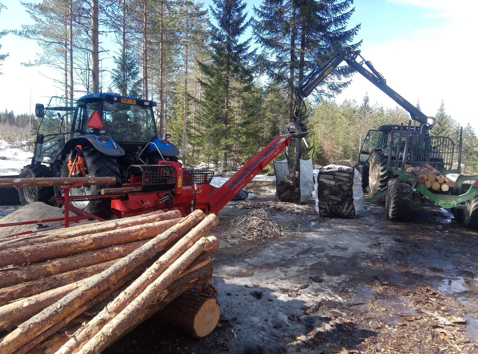 Älä laita tuollaista. Joku maasta vieraantunut yksilö saattaa oikeasti luulla, että noiden klapipussien täyttämiseksi on tehty tuollainen aukko metsään.