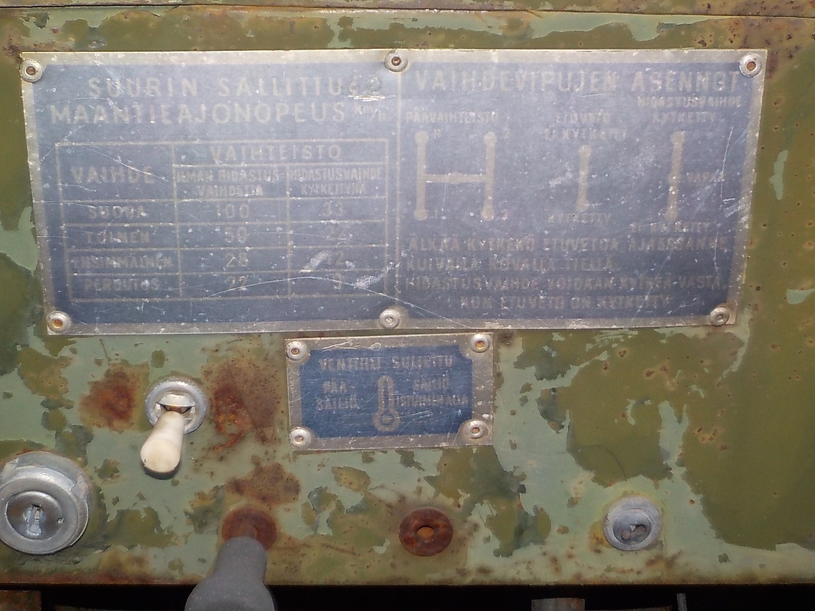 joo ex omistaja oli armeijan leivissä, pisti uudemman tekniikan ja paljon muuta varikon hyllystä. mutta konetta ei kannata säästää, se voidaan myydä erikseen. nokkapelti orginaali