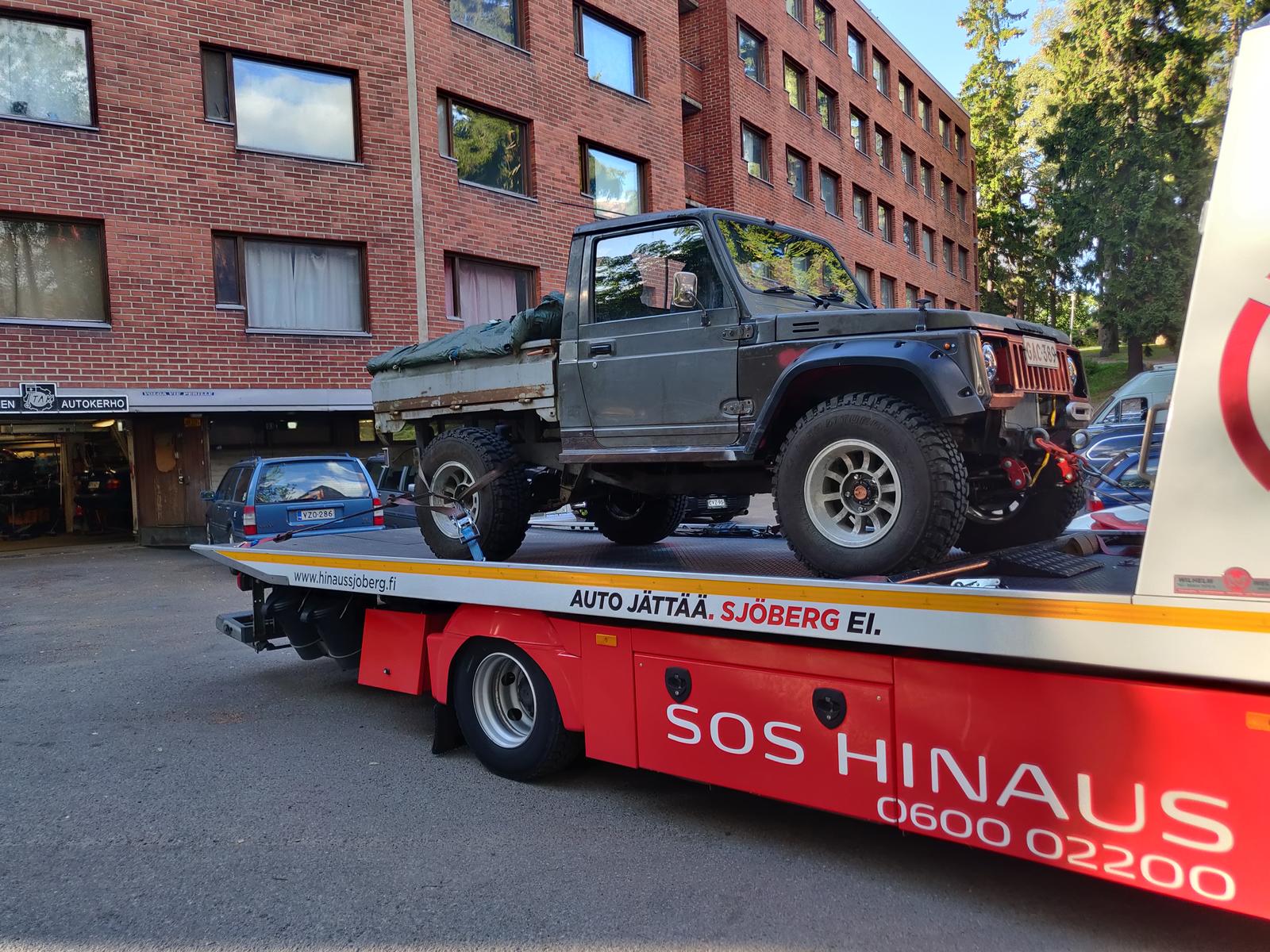 No Kävin katsastamassa tässä päivänä eräänä ja ihan huomautuksitta en selvinnyt. Takapäästä puuttui heijastimet (En edes tiennyt että ne puuttuu, taisi lähteä alumiinilavan mukana ) Noi toimii muutenkin huonosti, että ovat vaihtotuomionsa saaneet. Noi hienot ledivilkuiksi ajattelemani tuikut ei nyt sitten olleetkaan sivuVILKUIKSI hyväksytyt vaan sivuvaloksi. Pitää myös siirtää paikkaa kun levike peittää liikaa. Takaa puuttuu myös pohjaanlyöntikummit ja jarruputket on aika huonosti siinä linjalla. Nämä ja muutama muu pikkujuttu fixattavana. Eli pientä remonttia tiedossa.Isompi rempntti oli sitten raakasti rallattava laatikko. Ei pitänyt pahaa ääntä ennen avaamista, avaamisen jälkeen oli kauhia. No hommahan lähtee tän tekniikkapaketin kanssa varsin suoraviivaisesti liikenteeseen. Purin laatikon sisukset päätyyn asti ja tarkistin silmämääräisesti synkrot ja siirtäjän renkaat. Uudet laakerit sisuksiin. Kone-laatikkopaketti on muuten paljon paremmin tasapainossa, kun käyttää sitä laatikossa olevaa korvallista toisena ripustuspisteenä. Olen itse yleensä roikottanut vain koneesta, mutta tuli nyt tämäkin kokeiltua. Ei mikään turha koukku ![]() Maskin askartelin paikalleen. Piti deletoida konepellin lukon patti, että mahtui jäähdyttimen kanssa paikalleen. Halusin tähän vähän paremmat penkit kuin nuo Samuraista laitetut. Tilanahtaus on vain lavaSuzzukin hytissä aivan järkyttävä. Mikään pikkuauton penkkikään ei helpolla sovi, kun turvavöiden kelat on pinta-asenteiset, eikä B-pilarin sisässä kuten umpikopissa ja avossa on. No naamakirjassa muutamassa rosvosektoriryhmässä mukana ja päivän ideabingo kilahtaa saapasmaahan, eli Italiaan. Siellä on Luigi ja Marco keksineeet, että Smartin penkkejä voi laittaa Suzukiin ja melkeinpä viikoittain joku penkkiparia ko. palstalla kaupittelee. Itse en toki Italiasta hankkinut penkkejä, vaan ihan Härmästä. Mageat jakkarat, kun on sysävedetty teräspellistä selkänoja Asentaminenhan alkaa aina kiinnikkeiden tekemisellä.Lopputulos on omaa silmää miellyttävä ja penkit on jopa mukavat istua. Toi 20x20 kalusteputki korottaa penkkiä vieläpä sen verta sopivasti, että Bilteman littusubbari mahtuu edelleen olemaan kuskin penkin alla Penkinlämmittimet voisi vielä kytkeä ja sivubägit tekisi mieli kaivaa kuuseen näistä.No sitten niitä pienelle piirille kerrottavia juttuja ![]() ![]() Neitsyt(työ)matkalla tässä toissapäivänä auto vastustelikin kunnolla. Aamulla sai pienen adrenaliinipaukunpiristämään termoskukista hörppimääni kahvia, kun motarin rampissa konepelti rävähti pystyyn. Nuo tilapäiseen käyttöön asentamani kumikoukut ei sitten pitäneet peltiä kiinni. Onneksi vauhtia ei ollut vielä niin paljoa, että isompaa vahinkoa olisi käynyt. Pieni ruttu konepeltiin tuli. Kotimatkalla sitten olikin jännempää. Fiilistelin kadonnutta vaihdelaatikon rallattelua, kun meno alkoi sakkaamaan. Auto puutui ja lopulta hyytyi tietysti pahimpaan mahdolliseen paikakan, eli motarin rampille No siinä sitten hetken tien poskessa kelailin vaihtoehtoja kunnes muistin, että en ollut sitä muutamaa kymppiä säästänyt liikennevakuutuksessa ja mullahan on hinausturva! Ei muuta kun soittelemaan vakuutusyhtiön palvelunumeroon ja hinuria tilaamaan. Siinä sitten sain reilu puoli tuntia istuskella autossa ja pohtia syntyjä syviä (kuten miksi sitä jerrykannua ei tullut nakattua lavalle kyytiin ja missä helvetissä kaikki työkalut on )No kyydit sain hovikorjaamon pihaan, jossa oli kaikki tarvittava auton käyntihäiriön poistamiseksi. (Jerrykannu ja suppilo) Tarttis varmaan ottaa tavaksi tankata autoja useammin, eikä arvata trippimittarin perusteella, kuinka pitkälle tällä kertaa päästään