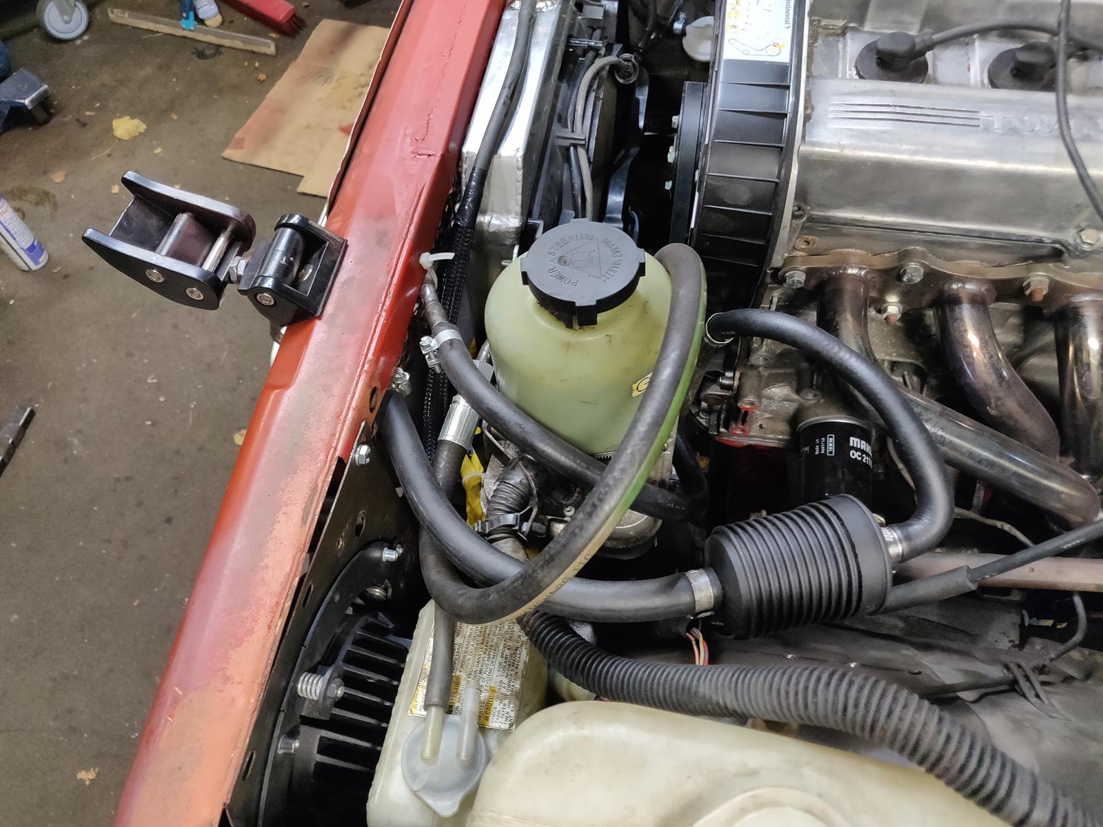 Ratti löysi paikalleen tuossa taannoin Jakopääremonttia. Huomaa asialliset puukiilat, jotka ovat ihan service manuaalin ohjeistuksen mukaiset ![]() Siistiytyi huimasti, kun sai Japanista kopan hihnan päälle ![]() Ohjaustehostinkin alkaa olemaan sähköjä vaille, kun sain öljyjäähdytysputken virkattua paikalleen.