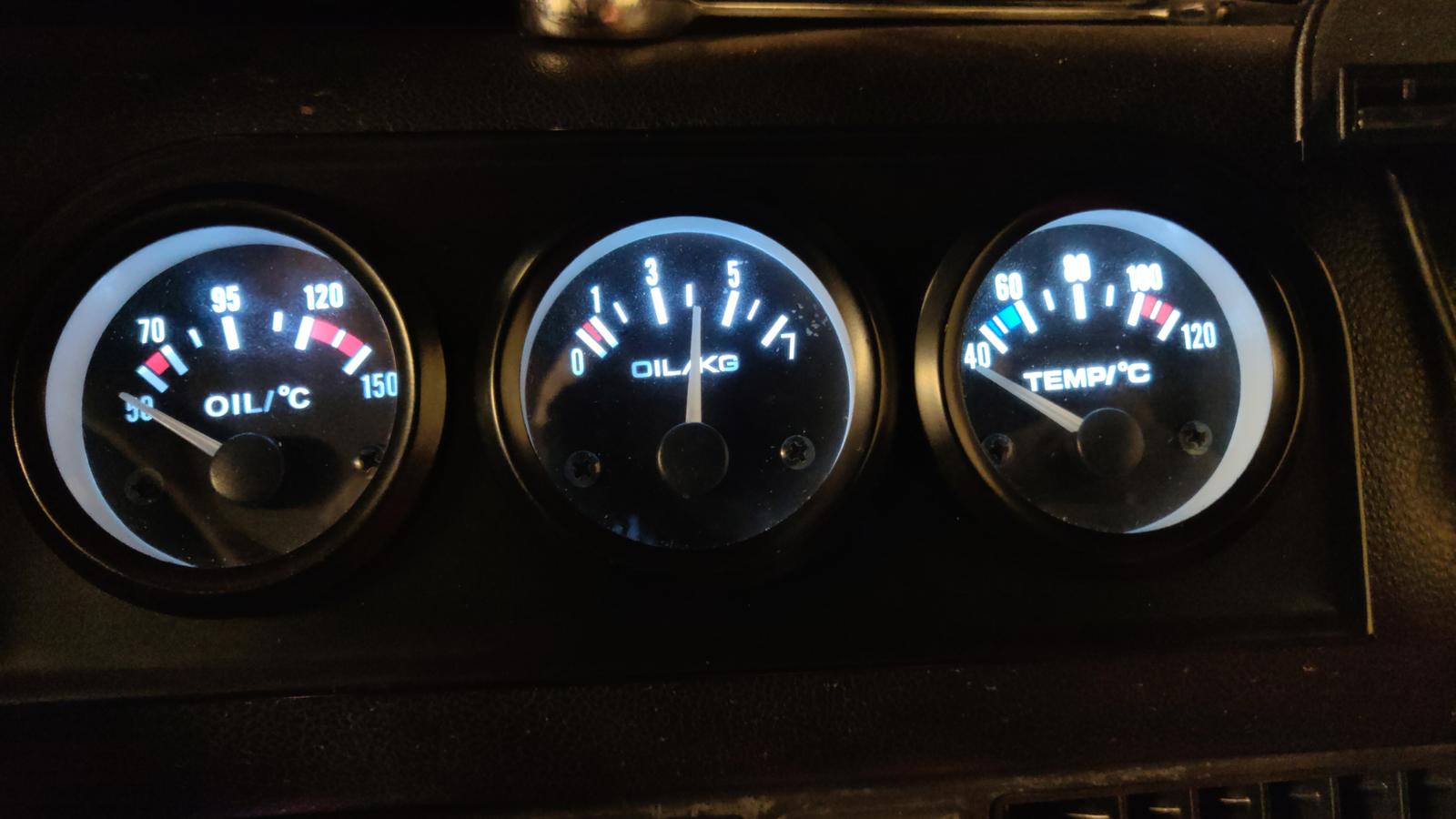Oli yhdessä lavankannakkeessa pientä hapettumaa, joten paikkailin sen. Samalla laitoin muutaman sidontapisteen lavalle, joten lavavanerikin on nyt ihan kiinni, toisin kuin aiemmin ![]() Nyt kun kaikki auton vilkut on mallia led, hain Motonetistä siihen sopivan avun. + ja - karva toki piti vaihtaa ristiin releen kannsata ja napsaista pienet palat muovia pois, mutta nyt on taas rauhallinen vilkuttelu. Kiinalainen mittaripatteristo asentui paikalleen, veden lämpötilalle löytyi kyvä paikka termarikotelon takaa, öljynpaineanturi merkkivalon anturin tilalle ja öljyn lämpöanturille hitsasin lappua öljypohjaan, johon sitten tein kierteen. Anturin asentelun jälkeen kaadoin koneeseen race-öljyt. Pyörittelin konetta puola pimeenä sen verran, että paineet lähti nousemaan. ainakin yksi kolmesta toimii ![]()