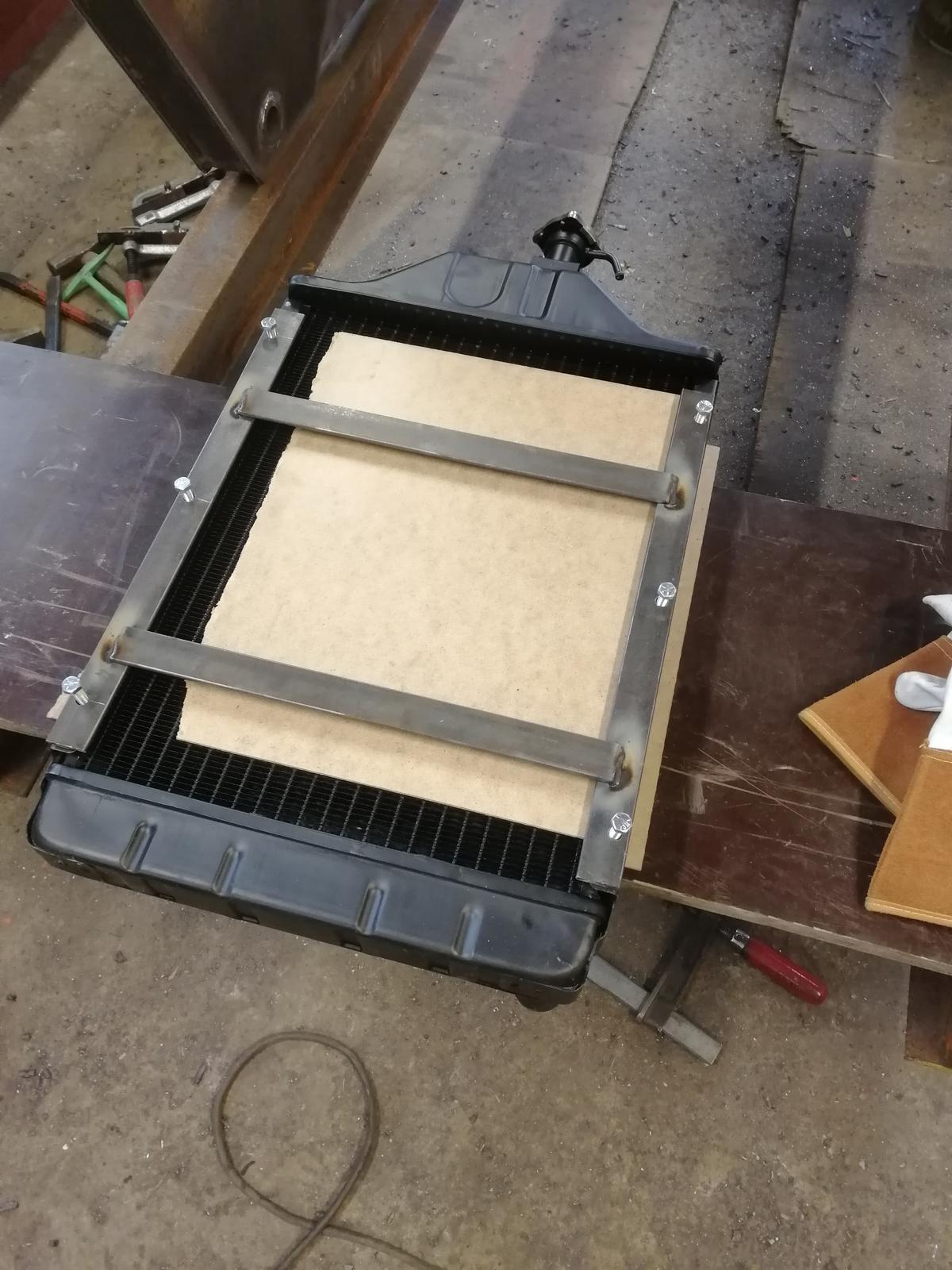 keväällä tuli hommattua jo täällä aijemmin mainittu uusi jäähdytin jamekseen ja uusi vesipumppu IKH myymälästä. Vesipumppu oli välitettavasti muovi siipinen... Jos olisin tilatessa tiennyt niin olisin jättänyt tilaamatta, mutta se nyt kuitenkin paikalleen meni. Syyläri ei ollut ihan yks yhteen sopiva niinkuin täällä oli mainittu. Itse muokkasin jäähdyttäjän ``kannakkeen / telineen``pulttien reijät seuraavasti: sapluunaa apuna käyttäen (kuvat kertovat) tosiaan tuulitunnelia piti myös hieman muokata uudelle jäähdyttimelle sopivaksi. Uudessa kuin vanhassakin jäähdyttäjässä kiinnityspulttien kierteet ovat tuumamitoituksella. Sen verran koe ajoja tehty plus 20 asteessa ettei enää ole keittämis ongelmaa remontin jälkeen.