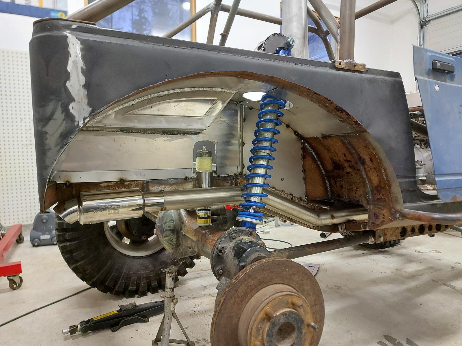 Keulan värkkäsin uusiksi alumiini putkesta niin sai painoa melkein 10kg pois. Moottorin eteenkin jäi sopivasti tilaa välijäähdyttimelle sekä tankille.