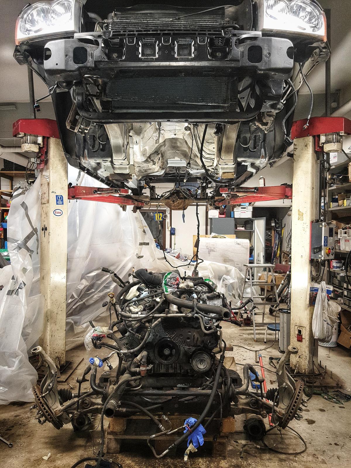 Lopultakin sain jeepin koneen työn alle.heti näkyykin nokka vaurio.jos saisin kesän mittaan jonkun verran voimaa takaisin.pikku lisä voima ei haittaisi sekään.
