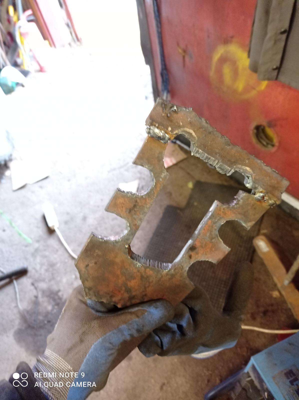 Tuommonen erikoistyökalu tuli tehtyä että sai sen mutterin irti. Oli tosiaan aluksi tiukka sen vaurioituneen kierteen takia. Ihmeen hyvän toi pikkuveli siitä sai vielä tehtyä. Käsineen sai helposti pyöriteltyä mutterin paikalleen.