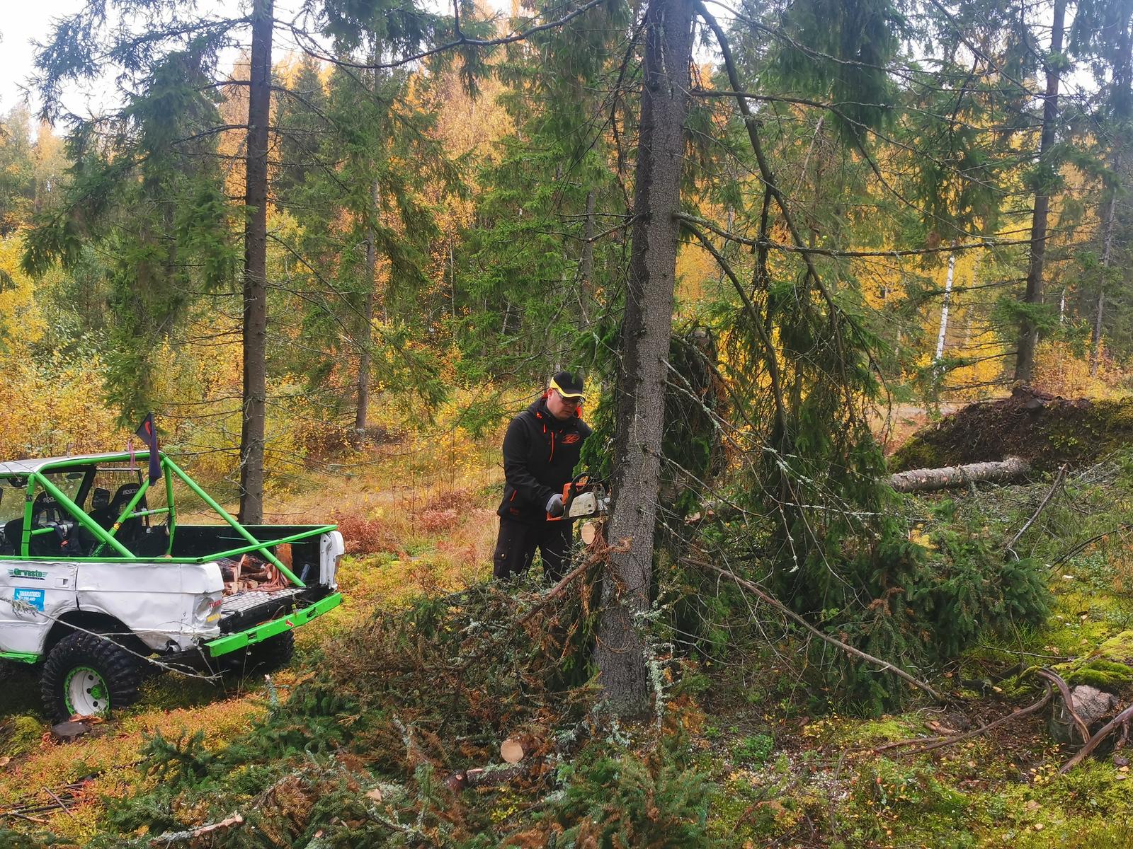 Ja niinpä vietettiin sateisen aurinkoinen päivä Raision radalla. Kerättiin maastosta tuulenkaatoja kylmän talven varalle iso kasa. Ohessa kurvailtiin pitkin metsää ja treenattiin. Ajeluteltii myös vieraita jotak olivat katselemassa sprinttiradalla pöristeleviä ralliautoja.
