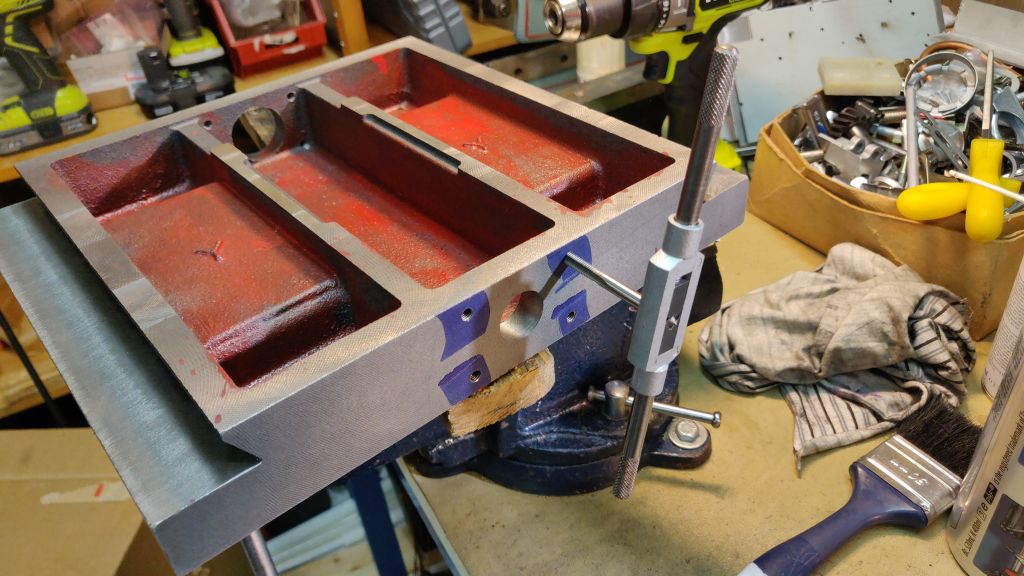 Olin nähnyt jo etäisen vision, että teen uudet ruuvit läpi pöydän ja laakerit molempiin päihin. Näin rakenteesta saa lähes välyksettämän. Ainoastaan vatomutterin klappi jää jäljelle. Visio kirkastui kun sattumalta löysin IKH:sta mustaa 10x1.5 kierretankoa. Samaan kasaan vielä 6201 32x12x10 laakereita, M10 jatkomuttereita sun muita aihioksi kelpaavia osia. Kokeen perusteella musta kierretanko tuntui toimivan hyvin vaikka ei olekkaan acme kierre. Syöttö tällä tangolla olisi 1,5mm / kierros. En antanut asian häiritä koska DRO:n asennus oli myös mielessä. No oli niissä valuosissakin sanomista. Valuun jääny joku rotanpesä, mutta ei ole näköjään haitannu valmistusta. ![]() |