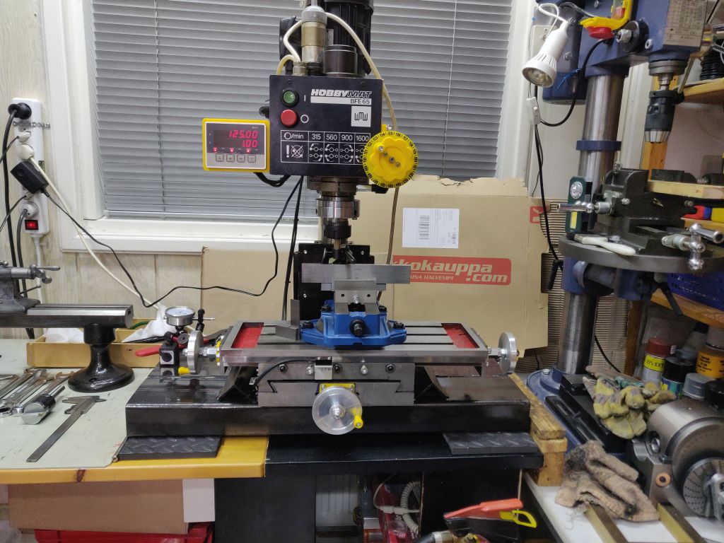 ![]() Lähinnä tutustumismielessä tuli hankittua M51E magneettinauha-antureihin perustuva halpa DRO. Houkuttelevaa tässä kiinan ihmeessä on tietysti hinta ja asennuksen helppous. Hinta 80,- :n luokkaa ostopaikasta riippuen. Magnetoitua anturinauhaa saa metritavarana. Kiinitys tapahtuu tarranauhalla ja päälle liimataan vielä rosterista oleva suojanauha. Itse anturit ovat 26x15x9mm pulikat mitkä voi taiteilijan vapaudella asentaa noin 1mm etäisyydelle magneettinauhasta. Asennus oli just niin helppo kun oletin. Alumiinista kulmapalat ja pari reikää kierteineen XY pöytään. Ehkä suurin duuni oli rasvaisten valurautaosien putsaus niin, että liima tarttuu. Näytölle syntyi 3D tulostimella kiinityskehys. Voi olla, että käyttökokemuksien jälkeen näyttö hakee itselleen vielä paremman paikan. Ensimmäiset mittauskokeet näyttävät lupaavalta. 100mm matkalla satku heittoa. Pientä epälineaarisuutta näkyy, mutta pitää yutkia tarkemmin tuleeko mekaniikasta vai anturinauhasta. Aika näyttää miten magneettinen anturinauha pärjää teräsputun kanssa. Jos toimintaperiaate kiinostaa niin naputtaa googleen vaikka magnet stripe dro niin lukemista löytyy. https://www.touchdro.com/resources/s.../overview.html Tarkistusmittaukset suoritettu vaaterin kanssa. ![]() |