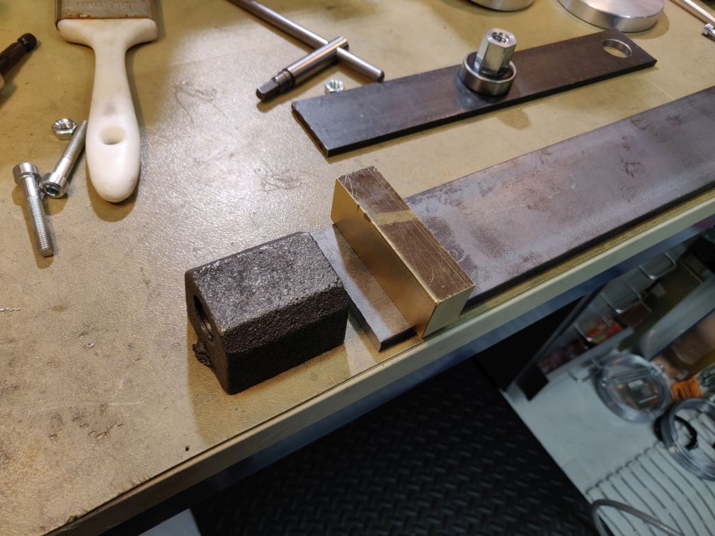Y-kelkan rakenne ja kasaaminen muuten suoraviivainen homma, mutta vetomutteri jää kelkan alapuolelle ja pitää kiinnittää päältä päin. Tämä olisi ollut helppo juttu jos saatavilla olisi ollut riittävän iso messinkimurikka mutterin tekoa varten. Nyt joutui laittamaan fyllipalan väliin mikä vaikeuttaa kasaamista.