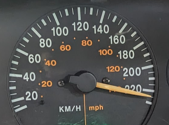 Päivitystä tännekin: ärsyttävä ominaisuus laitteessa on nopeusmittarin (neulan) ja matkamittarin suhteellinen virhe, noin 10%. Neula ei näytä sitä arvoa mitä väylästä tulee. Ajattelin ratkaista tämän vaihtamalla tilalle uudemman vuosimallin mittariston. No, 1996 vuosimalli on monella tapaa erikoinen ja kaikki ne tavat on huonoja. ABS-valon ohjaus eri päin kuin 1997-1998. Mittaristoa piti siis hieman muuttaa amerikan forumin ohjeiden mukaan: