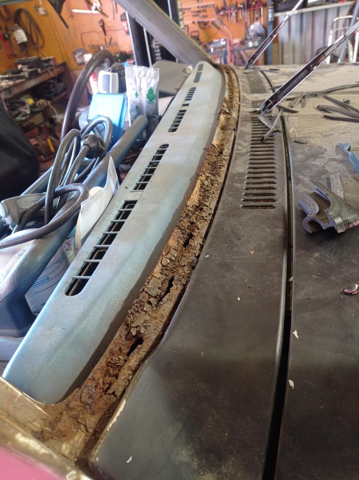 Nyt on tuulilasi irti. Mätää aika paljon, mutta onneksi nuo reunat mihin tiiviste tulee kiinni on ehjät. Ei tarvitse niitä yrittää mitoittaa oikein pitkältä matkalta. Isoin ongelma lienee tässä tiivisteen saaminen. En ehjänä saanut irti ja olihan se muutenkin aika huono, etenkin ulkopuoli...