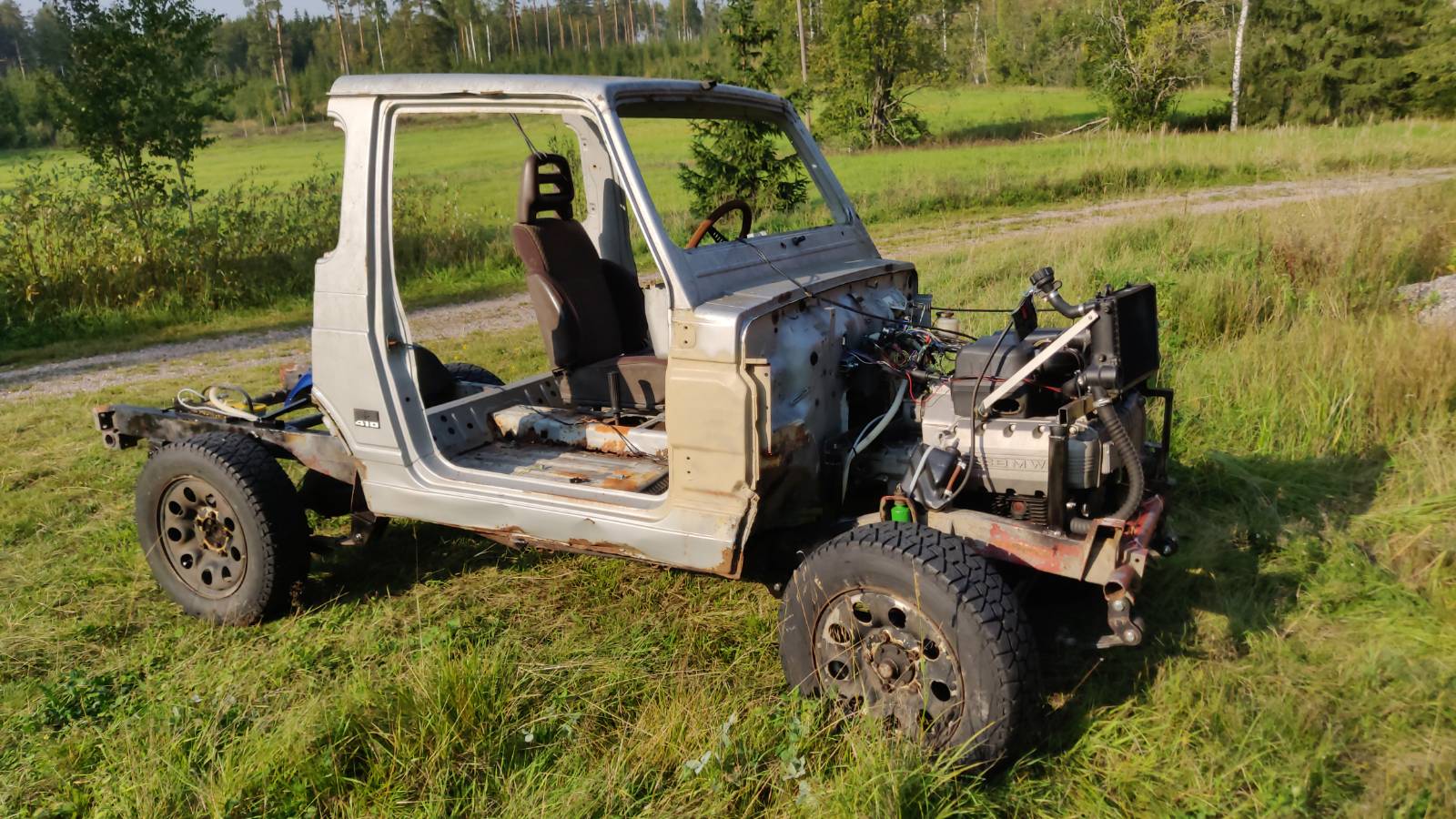 Ensimmäiset havainnot: - Hitaat vaihteet ovat hitaita . Välityshän on noin 150:1.- etuakselin joustos pitää rajoittaa, ottaa kiinni öljypohjaan. - Äänimaailma on kunnossa, mutta meteli hytissä hirvittävä. - Ainakaan hitaissa vauhdeissa ristinivelten kolmanopeusvärähtelystä ei tunnu olevan haittaa. - Bemarin pieni syylari ei tule riittämään metsäajossa. Flekti kyllä toimii, mutta jähtee turhan korkealla lämmöllä (vähän yli sata) käyntiin. |