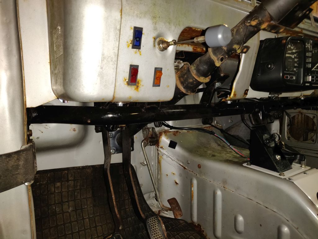 Vielä päätös kummasta Koyo vai Jtek kummsta lähdetään tekemään. Tarkemmassa tutkiskelussa kun paljastui pieniä eroja vaikka kuinka. Lähinnä rattiakselin puolelta. Jtekkejä kun oli kaksin kappalein niin arpa osui siihen. Eikun purkamaan. No Japanilainen oli tehnyt jekun. Säätövivin lukituspultti aukesi oudon tahmeasti ja julmalla voimalla. No siinähän olisi ollut vasen kierre. Sitten vaan funtsailua ja mitoitusta. Alkoi näyttämään siltä, että kyllä se tohon mahtuu ja jalatkin menee vielä polkimille. Samoin näytti siltä, että akseleita sopivasti pätkimällä ja modifioimalla voimansiirtokin saadaan kasaan.Viimeksi muokannut Säätäjä_setä : 10.11.2024 20:01 |