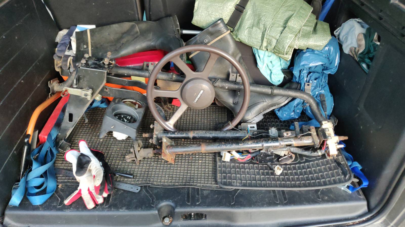 Vielä päätös kummasta Koyo vai Jtek kummsta lähdetään tekemään. Tarkemmassa tutkiskelussa kun paljastui pieniä eroja vaikka kuinka. Lähinnä rattiakselin puolelta. Jtekkejä kun oli kaksin kappalein niin arpa osui siihen. Eikun purkamaan. No Japanilainen oli tehnyt jekun. Säätövivin lukituspultti aukesi oudon tahmeasti ja julmalla voimalla. No siinähän olisi ollut vasen kierre. Sitten vaan funtsailua ja mitoitusta. Alkoi näyttämään siltä, että kyllä se tohon mahtuu ja jalatkin menee vielä polkimille. Samoin näytti siltä, että akseleita sopivasti pätkimällä ja modifioimalla voimansiirtokin saadaan kasaan.Viimeksi muokannut Säätäjä_setä : 10.11.2024 20:01 |