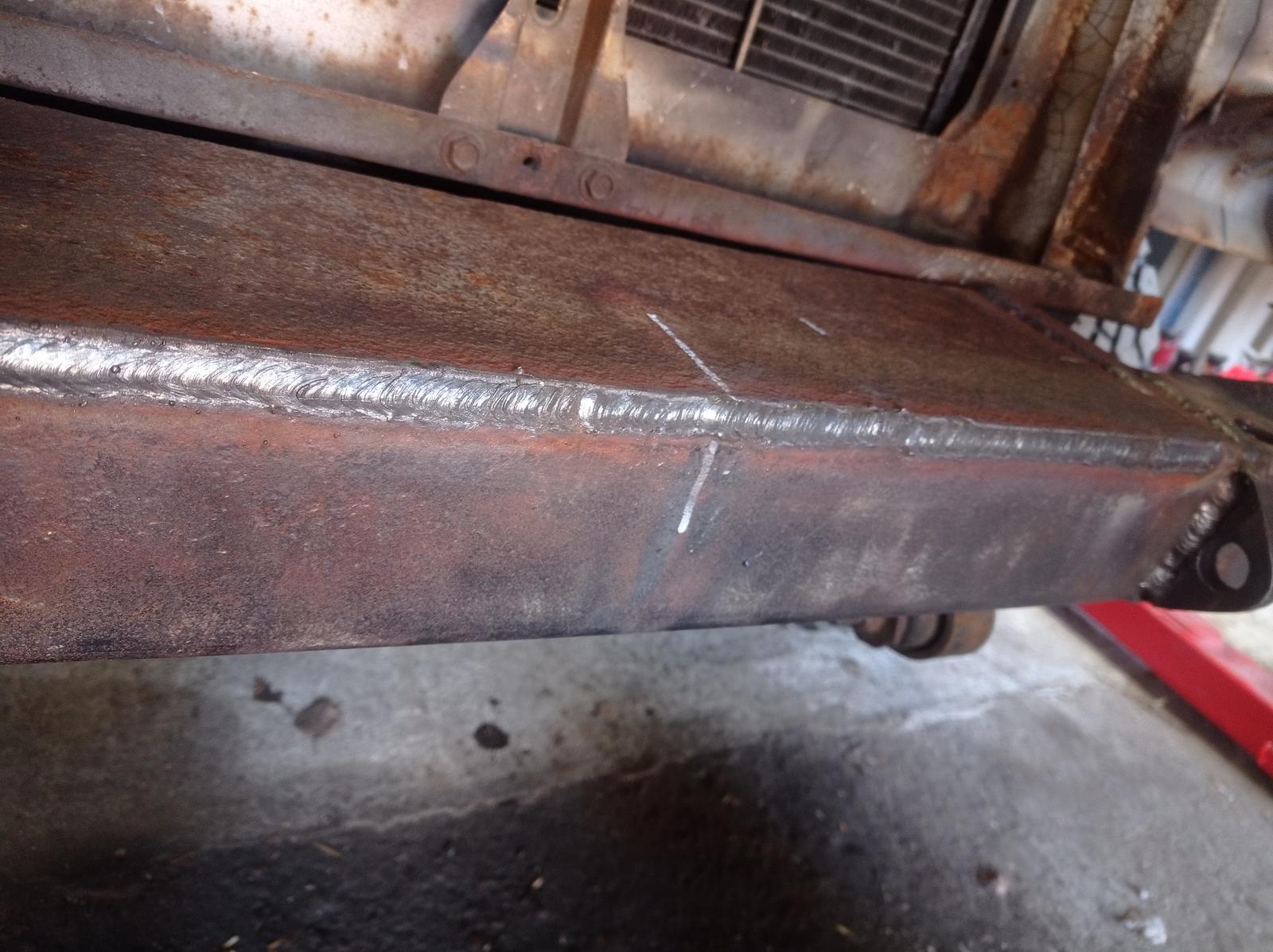 Ensimmäisessä kuvassa näkyy, että on vertailun vuoksi hitsattu mikillä 0.8 langalla pari pätkää ja loppu sauma on hitsattu 70-luvun Kemppi TRAN 200 "maatilahitsillä" 3,25 puikolla... On tuo uus invertteri paskana, niin täytyy kempillä vedellä. Mikillä kun nuo hitsaa niin menee vaan kaasua ja lankaa hukkaan, kun on puikkokin...