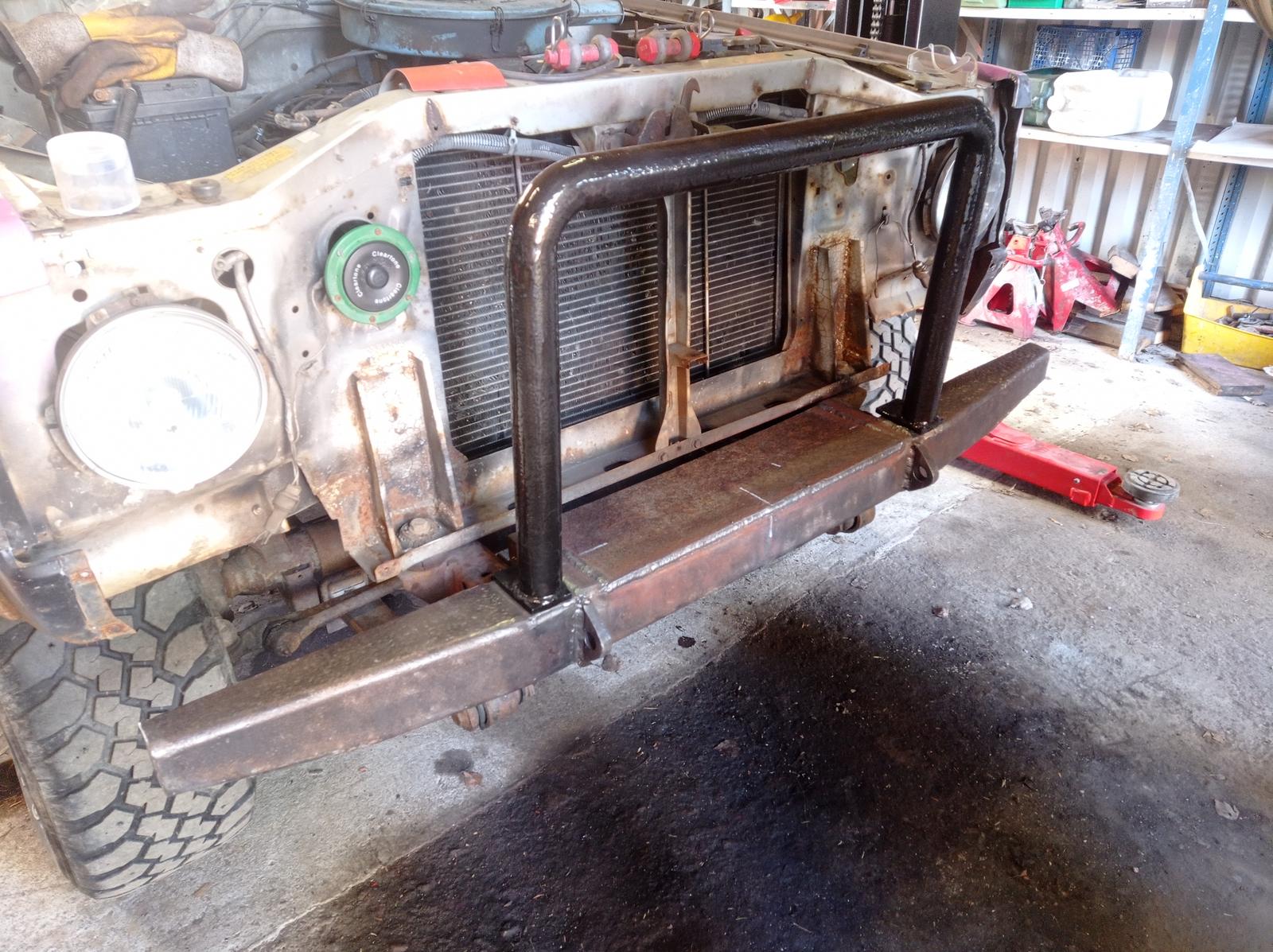 Nyt kun "alkuperäinen" auton puskuri on säilynyt perusrakenteeltaan samana, pieniä yksityiskohtia lukuunottamatta ja karjarautakin on irroitettava, niin toivottavasti kutakuinkin täyttää lain pykälät...