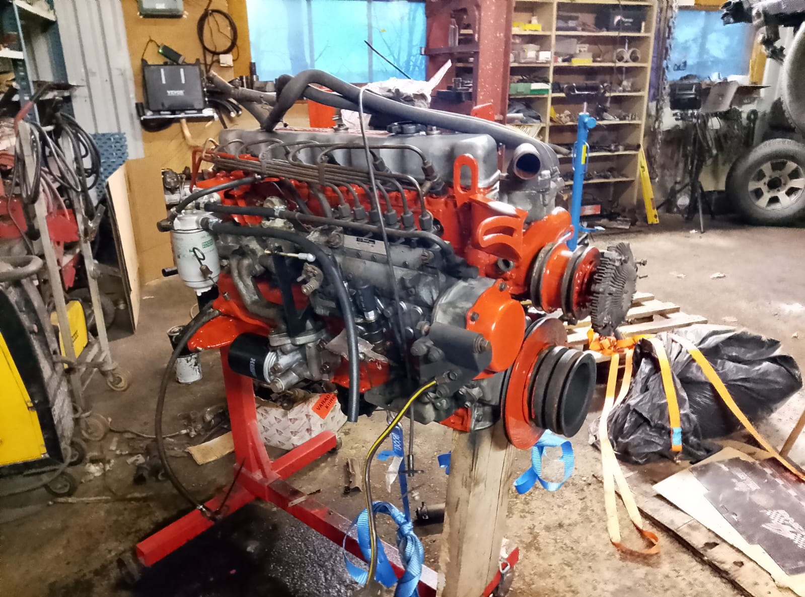 . Tuo kone on myös samaa ennen 1983 valmistettua mallia, kuten tuo minun omakin moottori . Aikamoinen tuuri oli.Suuttimet, laturi, tehostin, sartti ja siirtopumppu puuttuu, muuten näyttää kohtuu kokonaiselta. Oli muutenkin tarkoitus käydä pääkaupunkiseudulla kaverin nurkilla pyörimässä, niin sai moottorin haun yhistettyä siihen ja sain kaverinkin auttamaan lastaamisessa ![]() Hyvin tuo Pajero ja peräkärry kesti tuon yli 300km reissun, joka on hyvä suoritus Pajeron koneelle