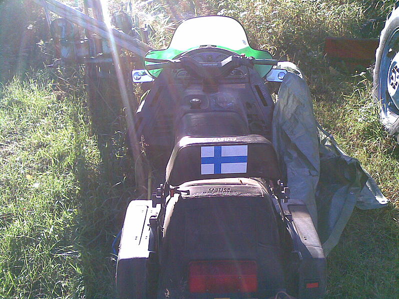 Siinäpä olis. Tällä hetkellä ketjukotelon kansi irti mut laitan sen kuntoon. Kelkassa on kaasualusta joka on hyvä selälle. Kone alunperin 700efi mutta vaihdettu rotaxin 650.nen Puristuksia on ettei tahdo yhdellä kädellä nykäistä. Onko sulla niitä turbohilppeitä enään? Entä kuuluuko ehjä kansi kauppaan?
