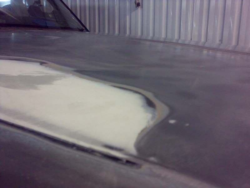 Koppa maalattu ja konepelti, sekä takaluukku. Ovet jo pellillä ja muoviosia tovi viellä hinkattava.