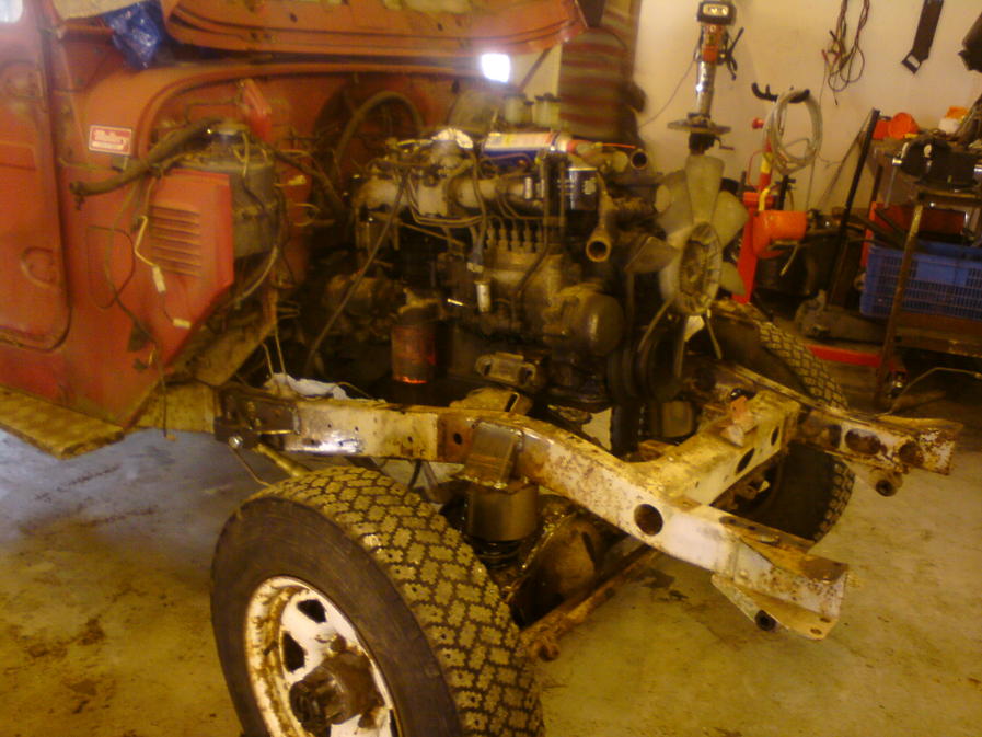 taas tuli jotain tehtyä.nyt istu moottorikin paikkaansa ja etu kardaani jäi 12cm lyhyeksi.sisään joustoo on 12cm ja ulos 63cm vielä ei ole venytelty ristiin kun takana vielä paikallaan lehtipakat.