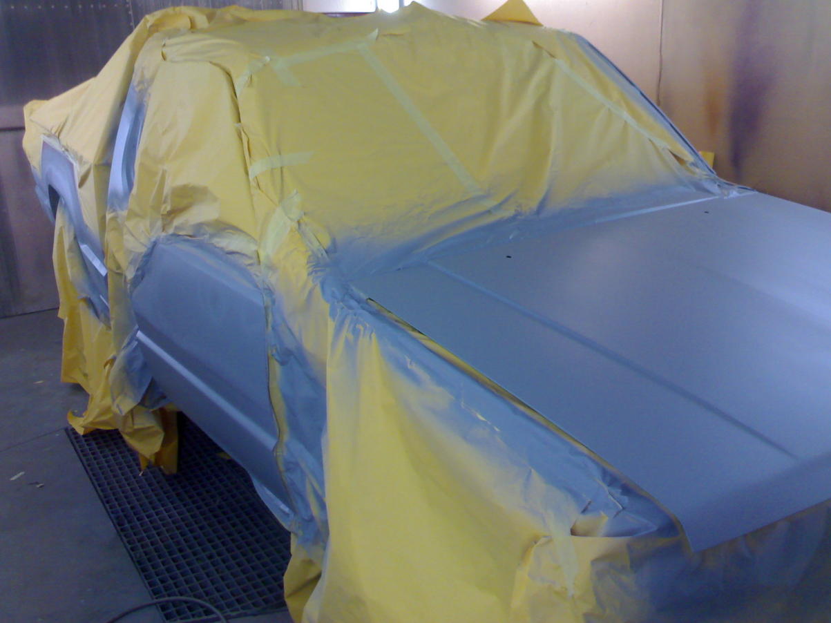 Lava maalaamossa odottamassa peittelyä ja putsausta. Mönkkärin rankakärry osoittautui oivaksi maalaustelineeksi. Sopivalla korkeudella ja helppo siirtää