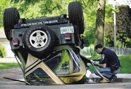 Naita kasaanpainuneita jeepin kaaria on tullut nahtya useammatkin, mutta yllattavinta on etta useasta on hajonnut vaihteisto kaadon yhteydessa.. (nama siis vauhdikkaita useamman kerran pyorahdyksia).
