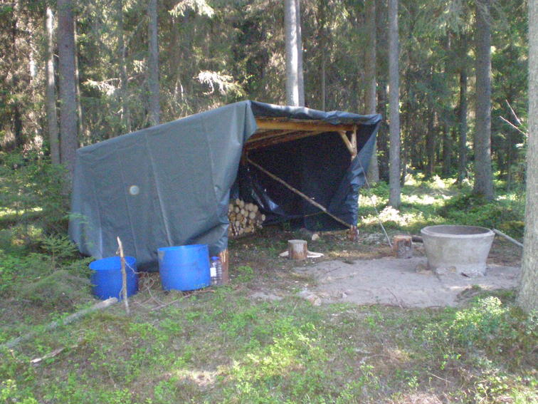 Laavu saatiin pystyyn ja koeajettua eli yö nukuttiin siellä.