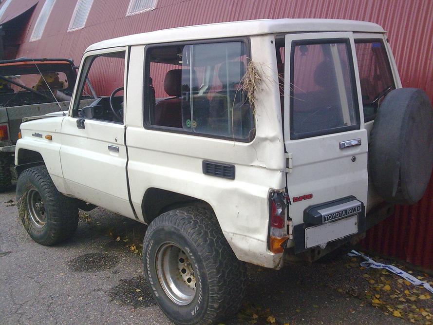 Toyota LJ-70 2,4td kaadettu -varattu-Myyty Myydään kilvissä oleva ja katsastettu LJ,mittarissa 330tkm, kipattu kyljelleen ja siitä katolleen, apparin A-pilari lytyssä, koko kato kärsinyt, osaava kaveri oikoo, kuvat kertoo enemmän edessä napalukot ja alla jotku 33" renkaat, elämää nähneet, verot ja muut maksut maksettu nopemmalle soiva peli!!! Myyty