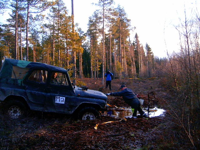 Ajelut ajettu,tai parit autot jäi vielä ajamaan kun piti lähtee pois.Kalustovaurioita ei tullut ilmeisesti kellekkään,maasto oli todella märkä->näin märkää ei ole tainnut koskaan ennen olla.Jonask ja uaz4x4 tulivat tasapistein voittajiksi,hyvänä kakkosena ana4x4 ja kolmosena pietarsaaren pojat mersullaan,kapa oli neljäs ja hänelle taas isot kiitokset kun auttoi rangea pääsemään pinteestä useaan otteeseen.Rangea vaivasi pienet renkaat mutta kuski tuntui siitä huolimatta olevan onnellinen