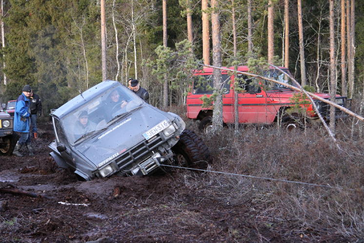 Ajelut ajettu,tai parit autot jäi vielä ajamaan kun piti lähtee pois.Kalustovaurioita ei tullut ilmeisesti kellekkään,maasto oli todella märkä->näin märkää ei ole tainnut koskaan ennen olla.Jonask ja uaz4x4 tulivat tasapistein voittajiksi,hyvänä kakkosena ana4x4 ja kolmosena pietarsaaren pojat mersullaan,kapa oli neljäs ja hänelle taas isot kiitokset kun auttoi rangea pääsemään pinteestä useaan otteeseen.Rangea vaivasi pienet renkaat mutta kuski tuntui siitä huolimatta olevan onnellinen