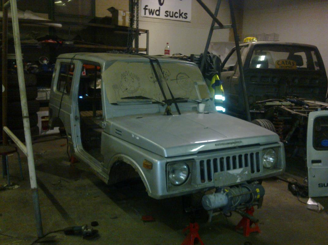 jaahas pitäskös välillä päivitellä.... elikkäs runkoa olen rapannut että saapi rueta hiekka puhalteleen.. etu akselilla on jousikupit tehtynä mutta iskarin kiinnikkeet puuttuu kummastakin päästä sekä edestä panhardi kun ei ole vielä sattunu sopivaa eteen.. kuvia tulee varmaan kun saa puhallettua ja maalattua osia..
