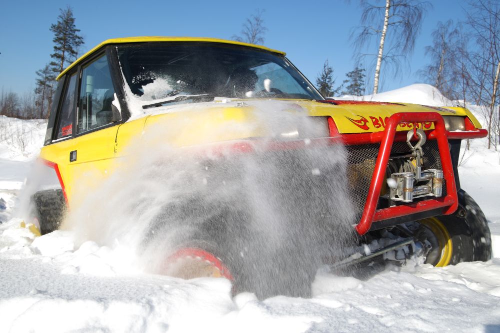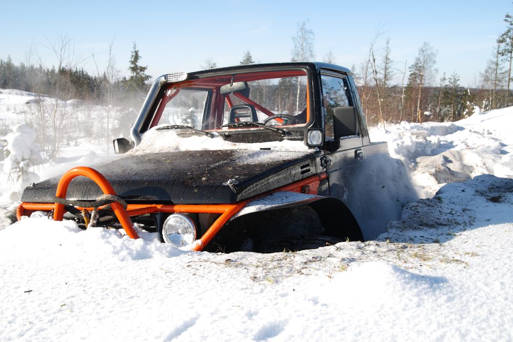 Ja muutenkin oli kädet täynnä töitä kun kantoja kasvoi lumesta auton alle vähän väliä... Eli liian matala auto
