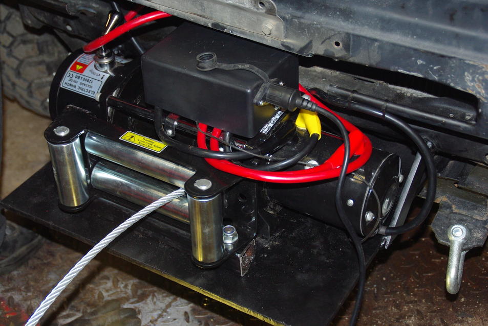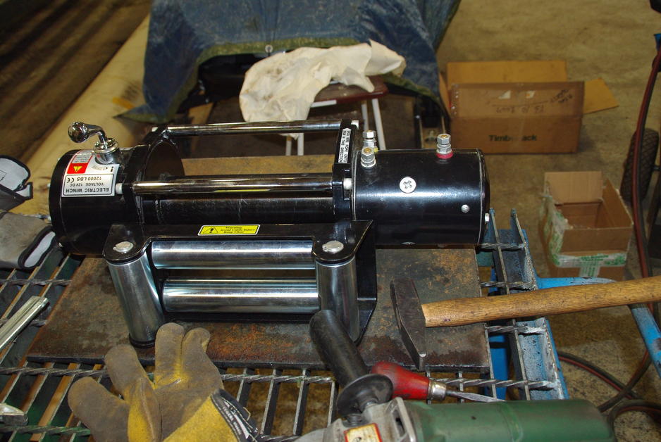 Perjantaina matkahuolto toi paljon paketteja. 12000 lbs vinssin, pylpyrän, maastotunkin ja vinssiin päävirtakatkaisimen. illalla asennettiin vinssi paikalleen. 10mm levystä tehtiin peti, hitsattiin kiinni ja tuet levylle.